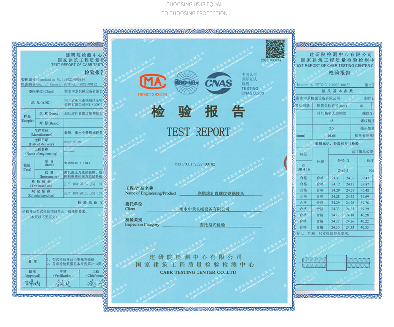 力學性能好、連接安全可靠:由于鋼筋端部經滾壓成形,鋼筋材質經冷作處理,螺紋和鋼筋強度都有所提高,彌補了螺紋底徑小于鋼筋母材基圓直徑對強度削弱帶來的影響,使連接的接頭強度高于母材強度,能使母材充分發揮其強度和延性。