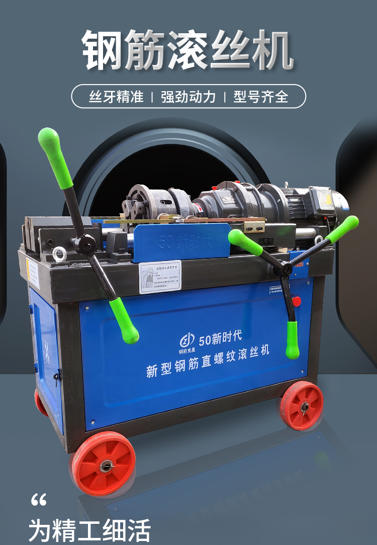 鋼筋直螺紋滾絲機是近年來廣泛用于建筑行業的一種鋼筋加工機械。它就把鋼筋端頭部位一次快速直接滾制使紋絲機頭部位產生冷性硬化,從而強度得到提高,使鋼筋絲頭達到與母材相同。由機架、夾緊機構、進給拖板、減速機及滾絲頭、冷卻系統、電器系統組成。